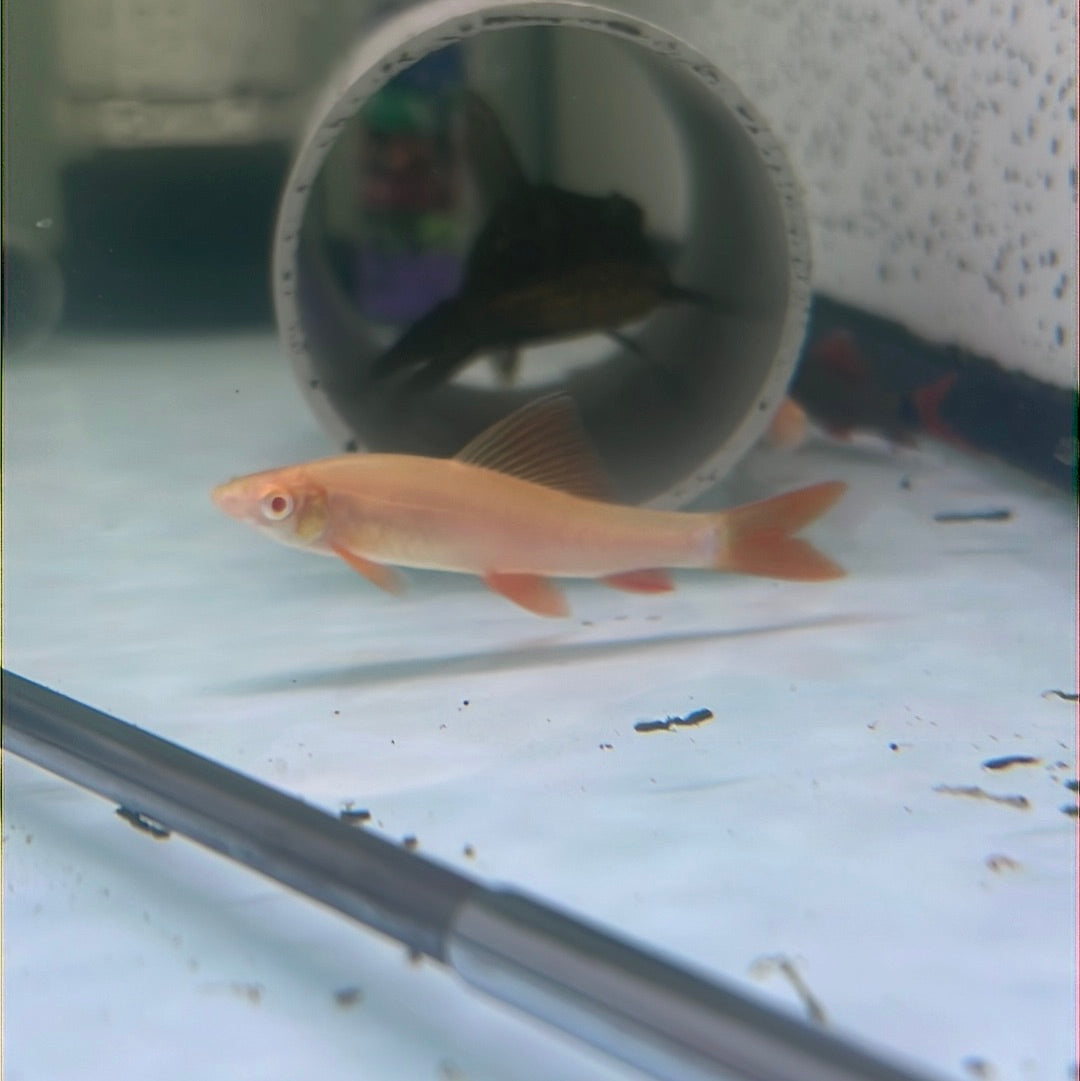 The Albino Rainbow Shark (Epalzeorhynchos frenatum) is a visually striking freshwater fish prized for its pale, almost translucent body and vibrant orange fins. This species is best suited for spacious aquariums with well-oxygenated water and plenty of hiding spots. Known for its territorial behavior, it requires careful selection of tank mates to avoid aggression. Ideal for experienced aquarists, the Albino Rainbow Shark thrives on a varied diet and stable water parameters, ensuring optimal health and vivid coloration.