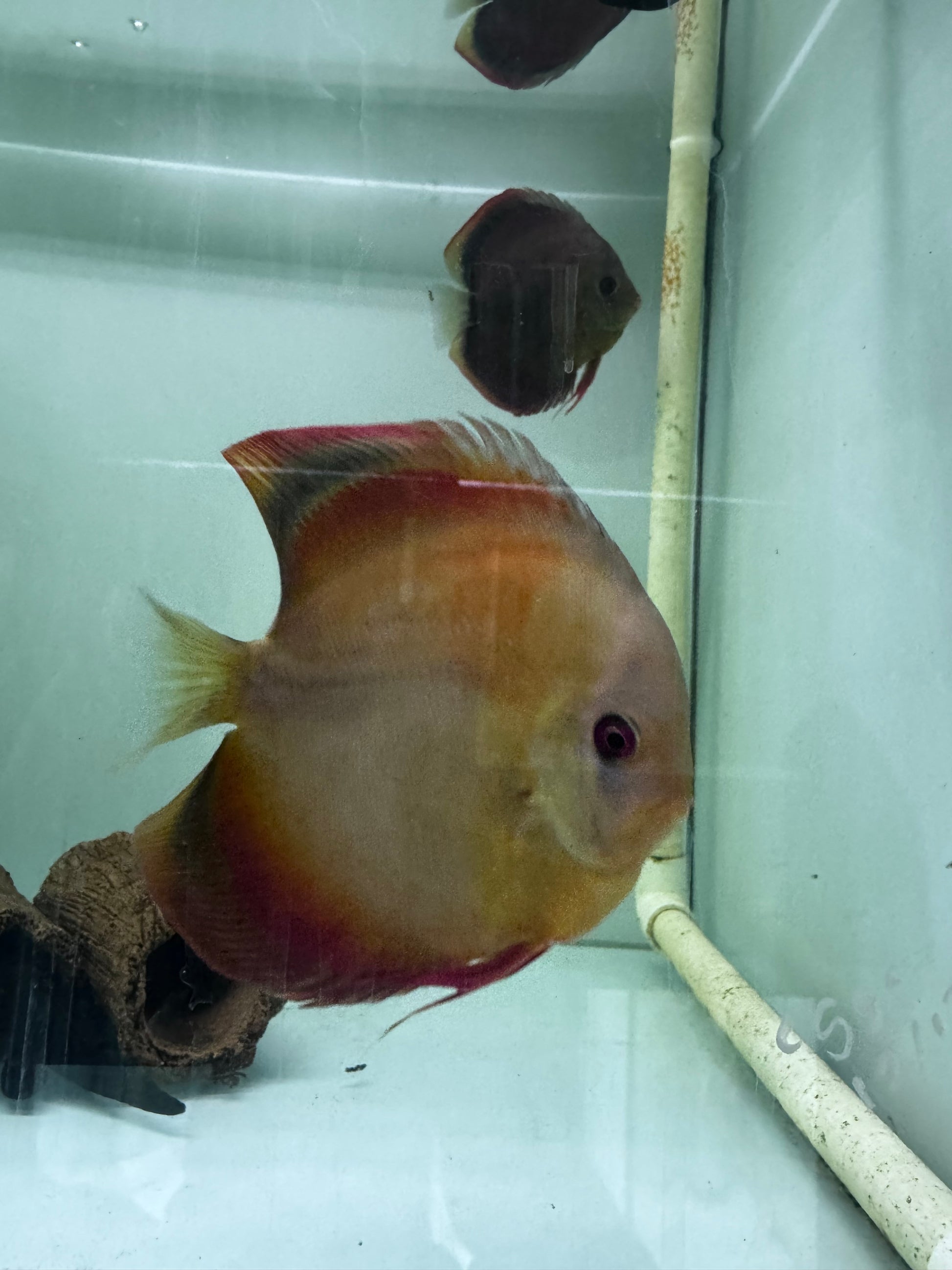 The discus fish has a disk-shaped profile and its fins are large and elegant. It's body is very compressed on the sides and can have many different colours such as white, yellow, orange, red, blue, blue and green, brown and black. Discus are popular as freshwater aquarium fish as they are peaceful species that can be kept in community aquariums without worry. Please note Discus fish are assorted colours and sizes.