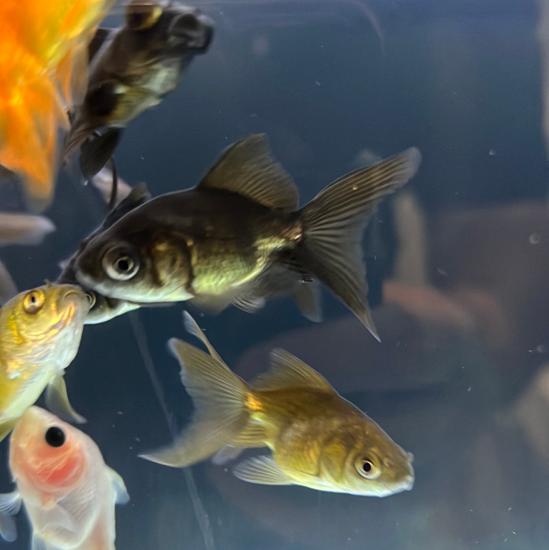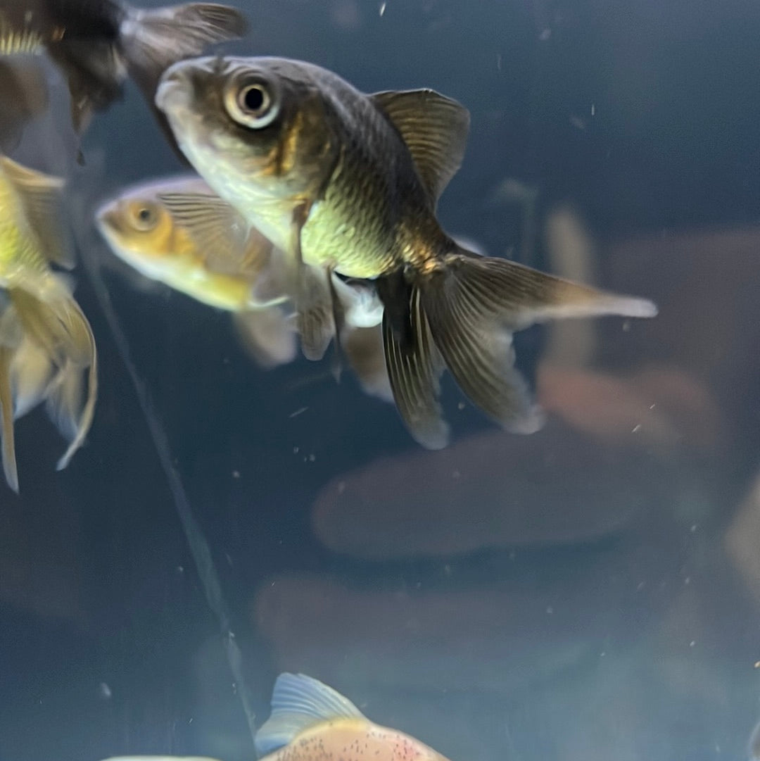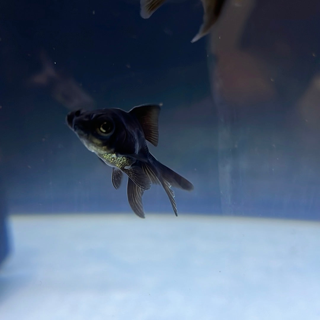 The Black Moor is a striking variety of fancy goldfish known for its velvety black coloration and distinctive protruding eyes. Its flowing fins and rounded body make it an elegant addition to any freshwater aquarium. This species thrives in well-maintained tanks with stable water conditions, moderate filtration, and ample swimming space. Black Moors are peaceful and compatible with similar slow-moving fish, offering both visual appeal and a calm presence in community aquariums.