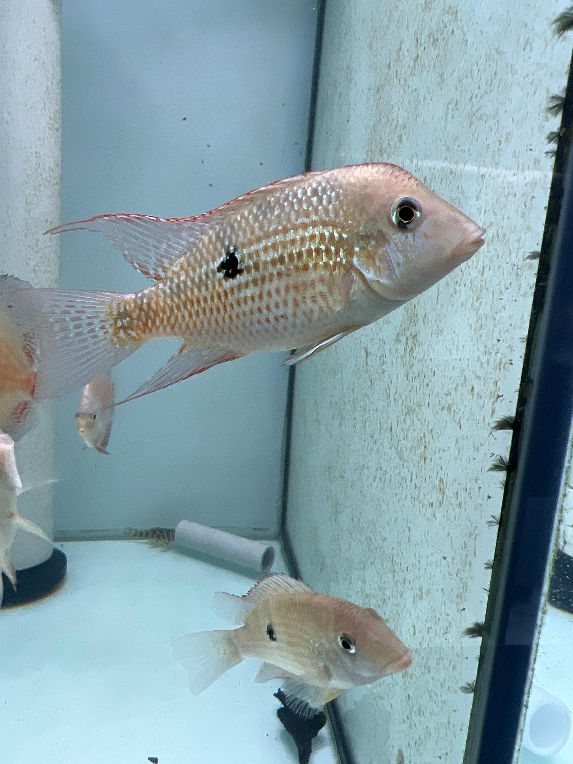 The Gold Dust Eartheater (Geophagus alto sinu) is an exceptional freshwater cichlid prized for its distinctive shimmering golden speckles and peaceful temperament. Known for sifting substrate to find nourishment, this species naturally helps maintain tank cleanliness. Ideal for experienced aquarists, the Gold Dust Eartheater thrives in well-maintained, moderately soft water with a neutral to slightly acidic pH. Its graceful movements and vibrant appearance make it a captivating addition to community tanks with compatible species, enhancing both the ecosystem and the visual appeal of your aquatic setup.